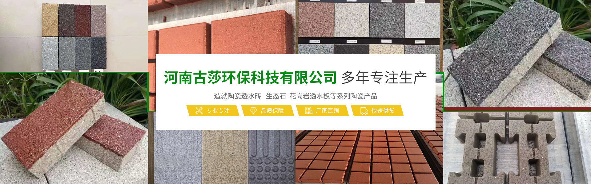 河南古莎環??萍加邢薰究傋溆诮煌屑~城市鄭州,是一家具備研發、生產、銷售能力為一體的綜合性現代化陶瓷企業。本公司專業生產經營生態陶瓷透水磚、生態鋪石、PC仿石材透水磚、PC仿石材景墻磚、普通透水磚、燒結磚等系列產品,完善的研發團隊,完善的生產流水線設備,打造完善的陶瓷企業。古莎環??萍棘F代化陶瓷企業是美化城市,改善生活環境質量的生態環保產品,可廣泛應用于公共建筑廣場、城市道路、公園、藝術景觀、廊道、房地產、別墅住宅小區、地鐵口、車站、高速公路服務區等。古莎環保科技在原有陶瓷企業基礎上,另拓展園林綠化、市政施工、瀝青包工包料施工、公路維修等業務板塊,專業培訓了一些園林綠化、市政施工技術人員,并有多年的施工養護經驗以及建筑工程經驗。保證市政工程施工質量以及園林綠化后期養護規范化、專業化。古莎環??萍妓裱钠髽I與品牌發展思路,是奠定在品質與產品應用之上。環保理念由我們共同倡導,理性思考,以推進步,感性溝通,以共建優越。古莎環保科技與大家真誠合作,攜手共進,為助力海綿城市建設,建筑高品質的綠色城市生活貢獻一份力量!